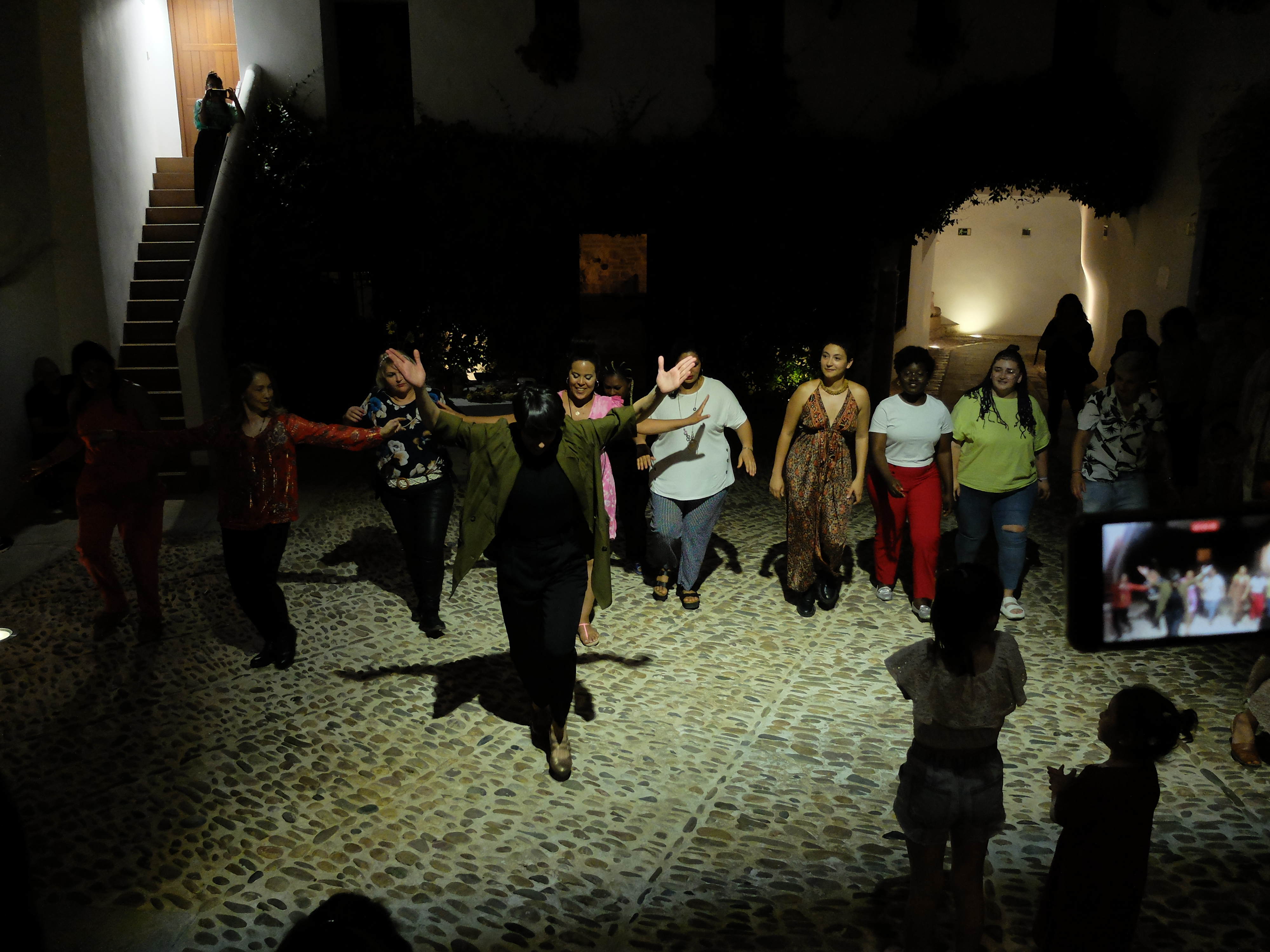 Hola, amigas, bienvenidas a Casa Árabe. Esta noche celebramos la generosidad de todas las mujeres que han participado bajo la dirección de Leonor Leal y el colectivo Plata en el proyecto “Disidanzas: Flamenco, cuerpos, relatos que bailar”. En la siguiente hora nos ofrecerán un recorrido sensorial por Casa Árabe lleno de olores del Magreb, canciones árabes, danzas colombianas, historias y cuerpos que han ido construyendo una narrativa con base en el flamenco. Abrimos este último ensayo/encuentro para seguir explorando la multiculturalidad y la reivindicación de un espacio de convivencia como ejemplo de mejora social. Te recomendamos que estés atenta porque en algunos momentos será mejor guardar silencio...pero en otros siéntete libre para participar incorporándote a ritmos, canciones y bailes. ¡Recuerda, es una noche de celebración de la que tú también formas parte!